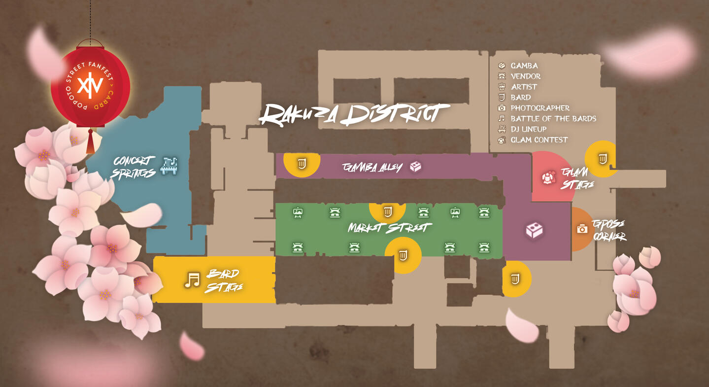 When the contest is over, bards are encouraged to go enjoy the rest of the festival - and if you'd like, spread out across the market and Kugane to give each other enough room to play and fill up the street with your sweet tunes! The map has been marked with areas that would be great for a bard.This year's contestants: